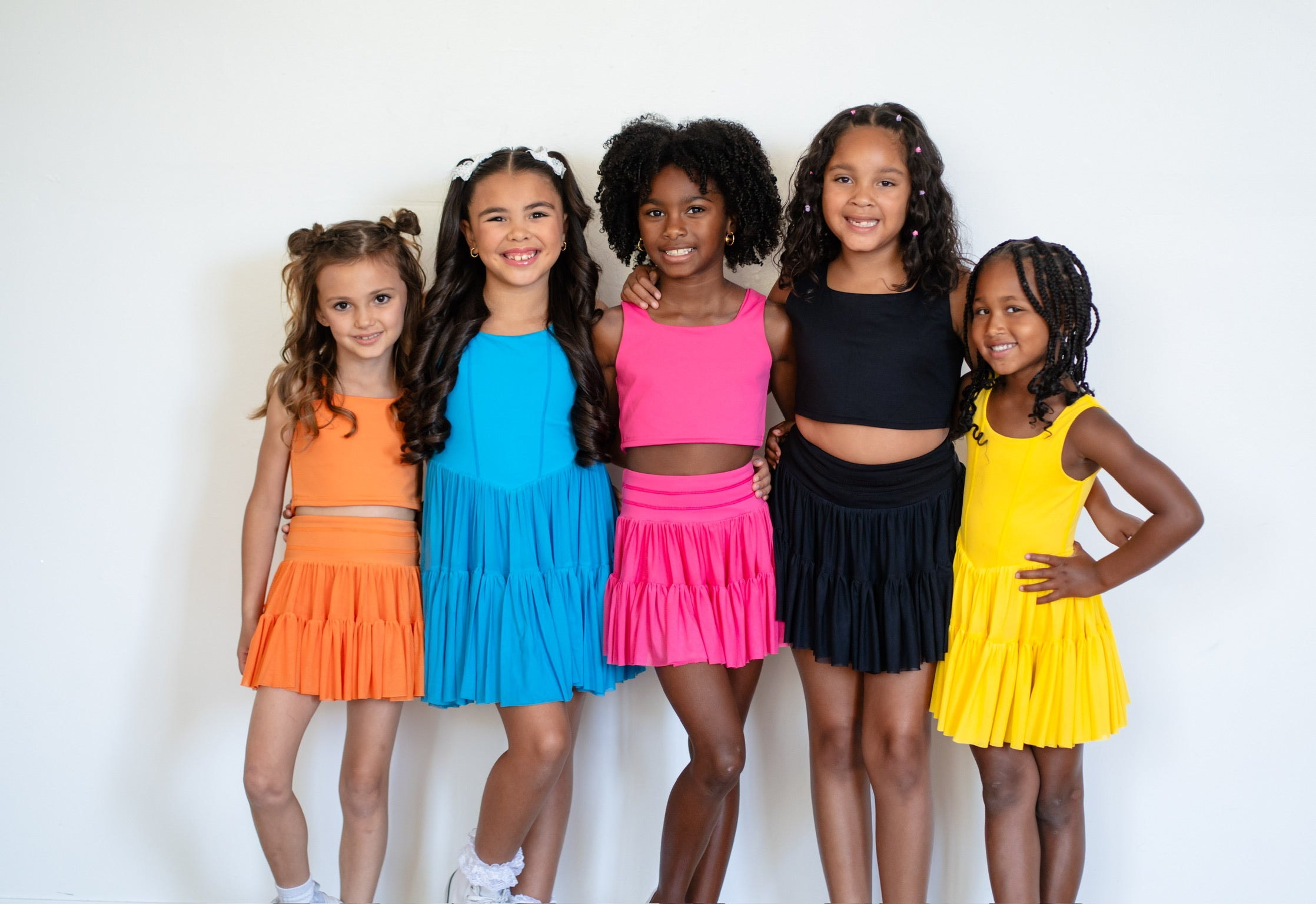 MAJORITY OF KID STYLES RUN A SIZE SMALL, BUT A HANDFUL OF STYLES RUN TTS. SKIRTED LEO - TWO PIECE - TWIRL DRESS - RILEY DRESS RUN A SIZE SMALL - EXAMPLE IF YOUR CHILD WEARS A SIZE 4T IN CLOTHING THEY WOULD FIT A SIZE 5/6 IN WRK.